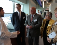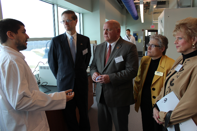 February 21, 2014 - Senator Hutchinson participated in an open house for the new Northwest Pennsylvania Innovation Support Program at the Clarion University Barnes Center at Trinity Point. The program will support research and development efforts by small businesses and entrepreneurs in the biotech, nanotech, manufacturing and pharmaceutical technology industries. Also pictured are Congressman Glenn Thompson; Clarion University President Karen Whitney; and Colleen Stuart, CEO of the Venango Training and Development Center.