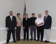 April 3, 2014 - Senator Hutchinson attended a ceremony honoring Clarion County Sheriff Rex Munsee on receiving the Employer Support of Guard and Reserve Program’s (ESGR) Seven Seals Award, which was presented in recognition of his support of employees serving in the National Guard and Reserve. Pictured from left are Rep. Donna Oberlander; Fred Fair, ESGR; Sheriff Rex Munsee; Deputy Sheriff Tom Lawton; Deputy Sheriff Timothy Bish; and Senator Hutchinson.