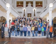 April 15, 2014 – Senator Hutchinson met with Austin Shaw (center) and his family, residents of Venango County, at a ceremony at the capitol where Austin was recognized by the Pennsylvania Liquor Control Board for his award-winning Alcohol Awareness artwork. Also pictured from left are Austin’s brother, Derek; mother Jamie; sister Rebecca; father Devlin; and sister Misty.