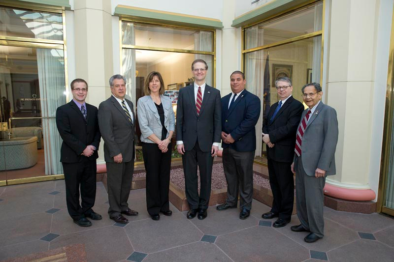 April 8, 2014 – Senator Hutchinson met with faculty, trustees and students from Clarion University to discuss funding and legislation important to the Pennsylvania State System of Higher Education. Pictured from left are Todd Garrett, Student Senate President and incoming student on the PASSHE Board of Governors; Dr. Ronald Nowaczyk, Provost and Vice President for Academic Affairs; Milissa Bauer, Trustee; Darren Young, student member of the Council of Trustees; David Bailey, Alumni Association President; and Dr. Syed Ali-Zaidi, Trustee.