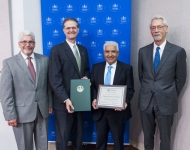 June 22, 2015 - Senator Hutchinson presented faculty from Slippery Rock University with a citation honoring their reception of the Green Ribbon School Award given to them by the US Department of Education. The award is given to schools that reduce their environmental impact and cost, improve the health and wellness of schools, students, and staff, and/or provide environmental education to its students and faculty.